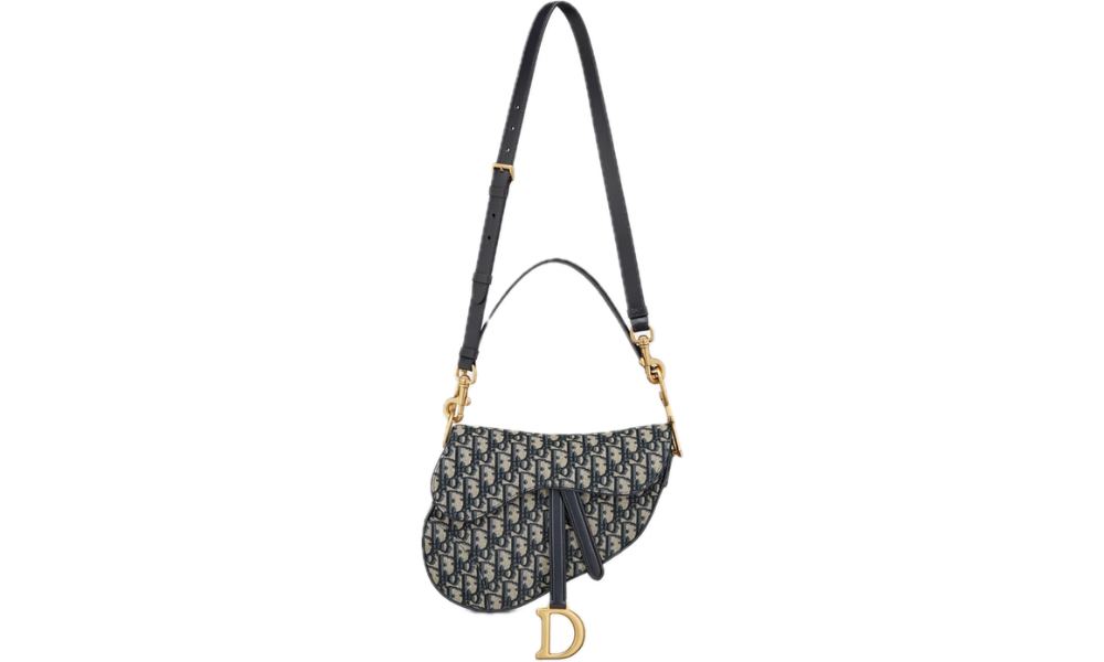 La silhouette distintiva mantiene l'emblematica pattina Saddle con la caratteristica chiusura a staffa a forma di D, dettagli che hanno reso questa borsa un'icona della pelletteria di lusso. Il motivo Dior Oblique in tonalità blu conferisce un tocco di sofisticatezza moderna, mentre la firma CD in metallo con finitura oro anticato su entrambi i lati del manico superiore aggiunge un elemento di preziosità artigianale.