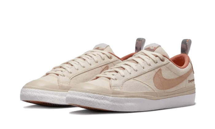 La sneaker vede una tomaia in canvas beige con rinforzi beige e marroni. La suola si divide in una midsole beige e bianca ed una outsole con sfumature di arancione, beige e grigio. Lo Swoosh in canvas marrone accompagna una linguetta beige e marrone e dei lacci bianco panna. Il pull tab completa la scarpa insieme al branding con il tag Doyenne SB sulla linguetta, la scritta Doyenne lungo la tomaia e la scritta Nike ricamata sul tallone.