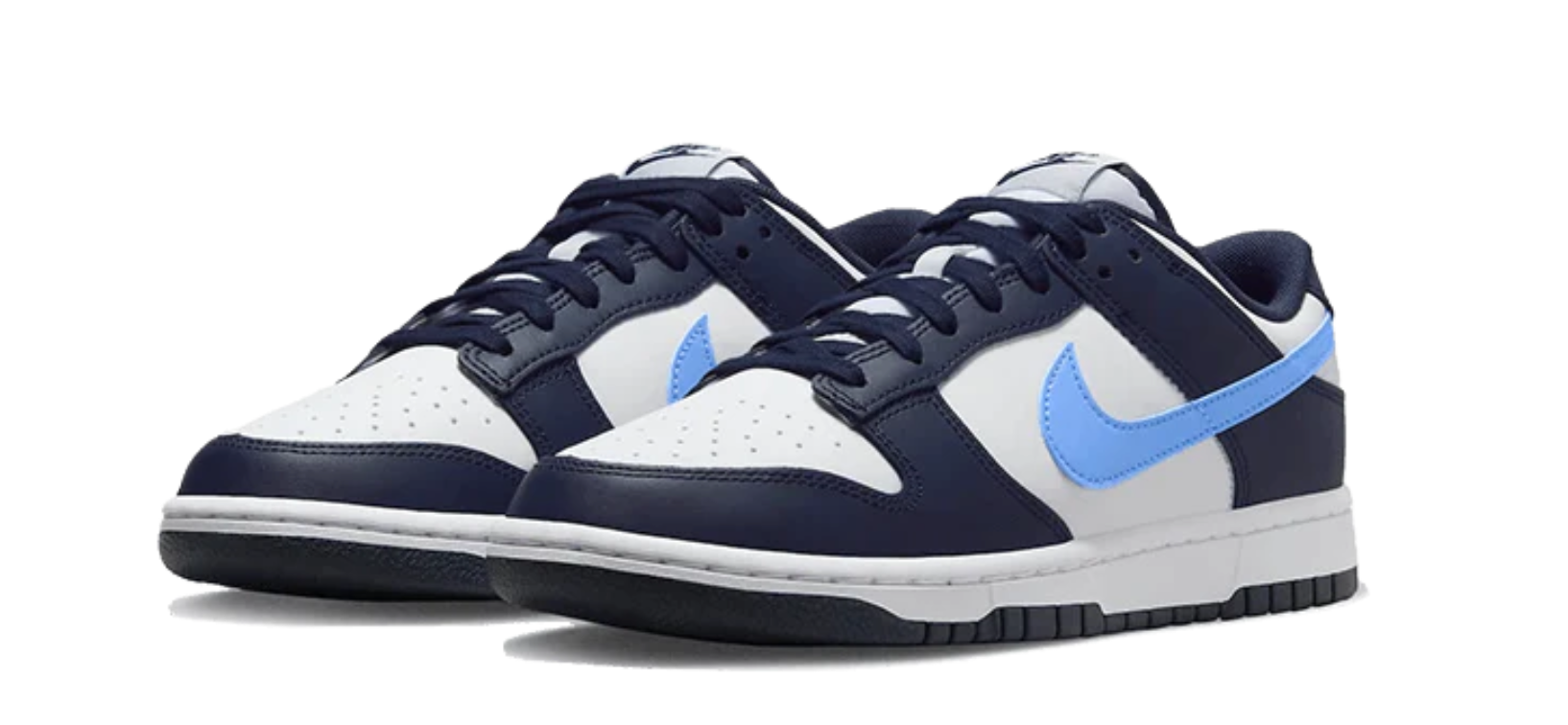 La silhouette delle Nike Dunk Low aggiunge la colorazione Midnight Navy University Blue alla propria offerta.
