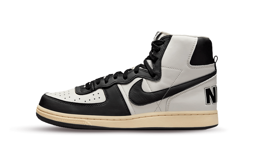 La sneaker vede una tomaia in pelle bianca con rinforzi in pelle bianca e nera. La suola offre una midsole ingiallita ed una outsole nera. Lo Swoosh in pelle nera accompagna una linguetta bianca e dei lacci neri. Il branding completa la scarpa con il tag Nike sulla linguetta e la scritta Nike posizionata sul tallone.