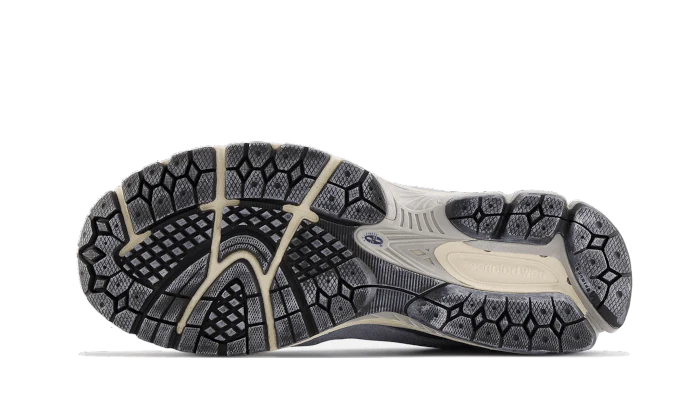 La sneaker offre una tomaia in mesh grigio con rinforzi in pelle scamosciata lilla e viola. La suola si divide in una midsole grigio chiaro, viola, e bianco panna, mentre la outsole si colora di nero. L’iconica N si colora di viola ed accompagna una linguetta grigia e dei lacci bianco panna. Il branding completa la scarpa con la scritta New Balance sulla linguetta, N ricamata in fondo ai lacci e logo New Balance posizionato sul tallone.