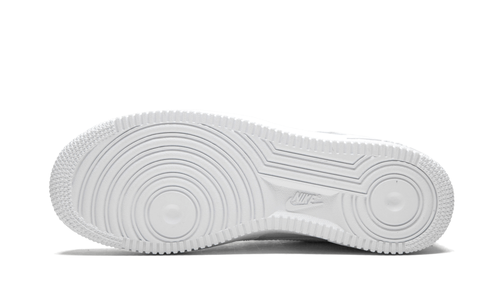 La sneaker vede una tomaia e rinforzi in pelle bianca. La suola mantiene il look monocromatico con una midsole ed outsole bianca. Linguetta e lacci bianchi completano la scarpa insieme al tag con logo Nike Air sulla linguetta, tagi in metallo AF1 e logo Nike Air ricamato sul tallone.
