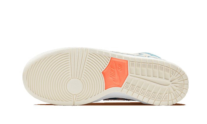Le sneaker vede una tomaia e rinforzi completamente ricoperti con un pattern floreale blu e arancione. La suola si divide in una midsole bianca e una outsole beige. Anche lo Swoosh, la linguetta ed i lacci si colorano di beige, mentre il tag arancione con logo Nike SB sulla linguetta conclude la scarpa.