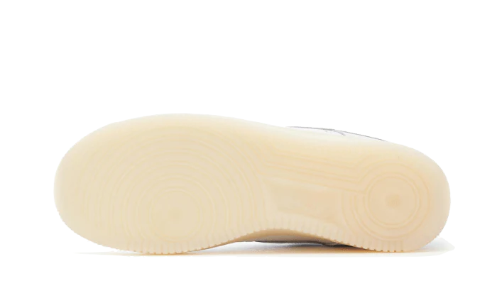 La scarpa offre una tomaia e rinforzi in pelle bianca con delle stelle ritagliate sul toebox. La suola si colora interamente di beige con un effetto traslucido. Lo Swoosh in pelle grigio accompagna una linguetta e dei lacci bianco panna. Il fermalacci a forma di stella con lo Swoosh al centro completa la sneaker insieme al tag Nike Air sulla linguetta e il logo Nike Air presente sul tallone.