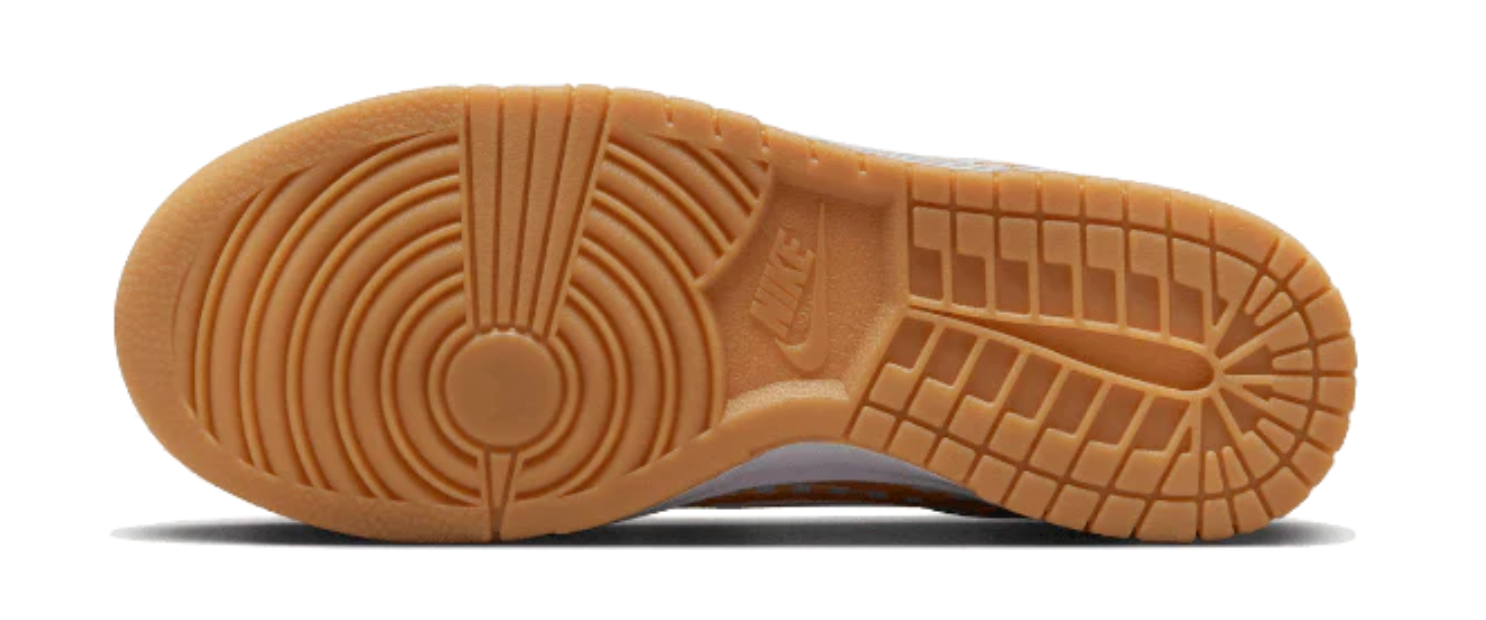 La scarpa vede una tomaia e rinforzi in cordura bianco con un pattern a quadri giallo ocra. La suola si divide in una midsole bianca ed una gumsole esterna. Lo Swoosh in pelle bianco accompagna una linguetta e dei lacci bianchi. Anche gli occhielli si distinguono in questa Dunk venendo ricamati di bianco. Il branding completa infine la scarpa con il tag Nike sulla linguetta e la scritta Nike ricamata sul tallone.