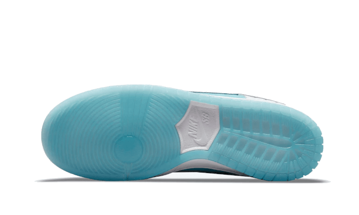 La collaborazione tra FTC e Nike SB propone una nuova colorazione delle Dunk Low Pro SB. La sneaker vede una tomaia in pelle azzurra scamosciata e rinforzi in pelle bianca con un pattern geometrico. Lo Swoosh viene proposto in pelle color argento argento, mentre la suola si divide in una midsole bianca ed una outsole azzurra traslucida. Linguetta azzurra e lacci bianchi accompagnano l’imbottitura interna gialla. A completare la silhouette troviamo il logo Nike Sb sulle linguetta con la scritta FTC e la scritta FTC ricamata di azzurro sul tallone.