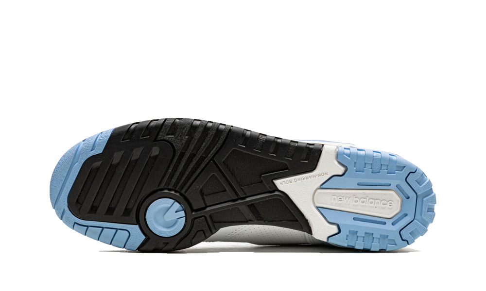 La sneaker vede una tomaia e rinforzi in pelle bianca. La suola si divide in una midsole bianca ed una outsole celeste e nera. Lungo la tomaia dettagli celesti e neri aggiungono carattere alla 550. Linguetta e lacci bianchi completano la sneaker insieme al branding dato dal logo New Balance 550 sulla linguetta, l’iconica N sul lato della tomaia e il logo New Balance sulla midsole.