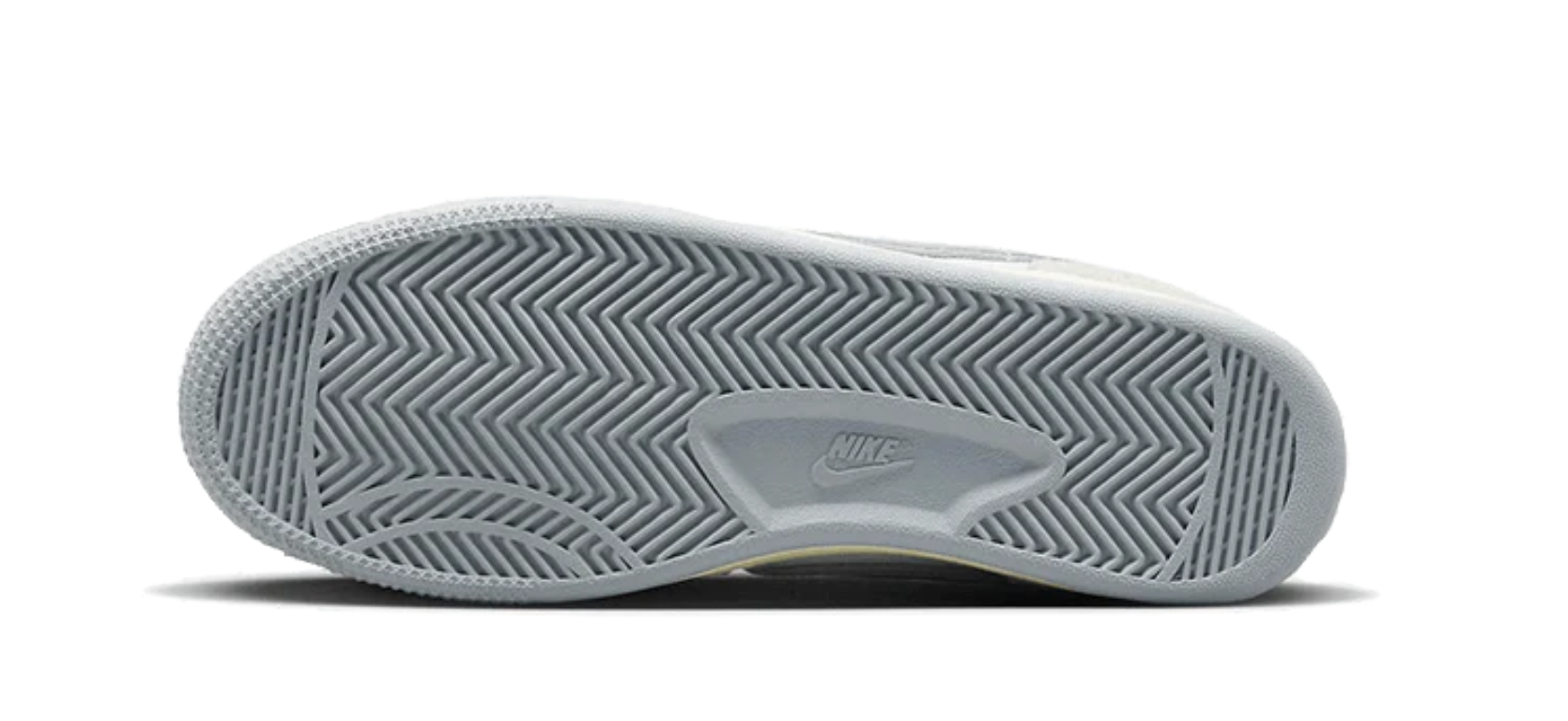 La sneaker offre una tomaia in pelle bianca e pelle scamosciata beige chiaro con rinforzi in pelle scamosciata grigio chiaro e beige chiaro. La suola mantiene il look neutrale con una midsole bianco panna ed una outsole grigia. Lo Swoosh in pelle grigia accompagna una linguetta marrone e dei lacci bianchi. Il branding completa la scarpa con il tag Liberté sulla linguetta e la scritta Nike posta sul tallone.
